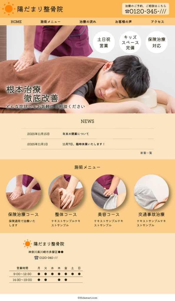 - 施術内容や基本情報が把握しやすいよう、情報の整理と導線をシンプルに設計しています。